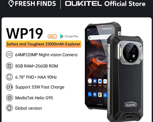 Oukitel WP19 Rugged Night Vision Smartphone 8 GB, 256 GB, 64M Camera, 90 Hz Helio G95